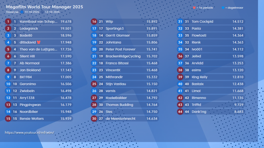 Schermafbeeldingen bedoeld voor de organisatie van het spel, om te delen in het Megaflits World Tour Manager topic van het Wielerflits forum.